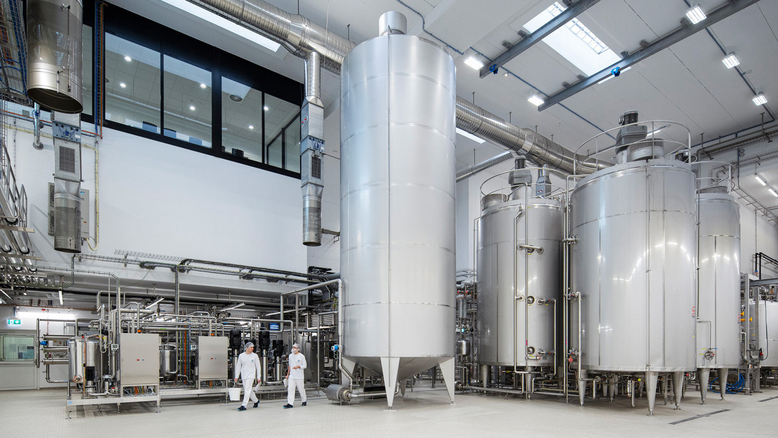 The production plant was inaugurated at the end of 2019. Here, we produce skimmed milk, whole milk powder, and whey powder using milk and whey primarily sourced in the Alps from NON-GMO fed cows. Our milk is both Kosher and Halal certified.